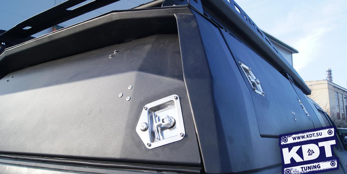 Кунг изготовлен комбинированно из стали 2 и 3 мм. Двери и крыша — из алюминия 3 и 4 мм.