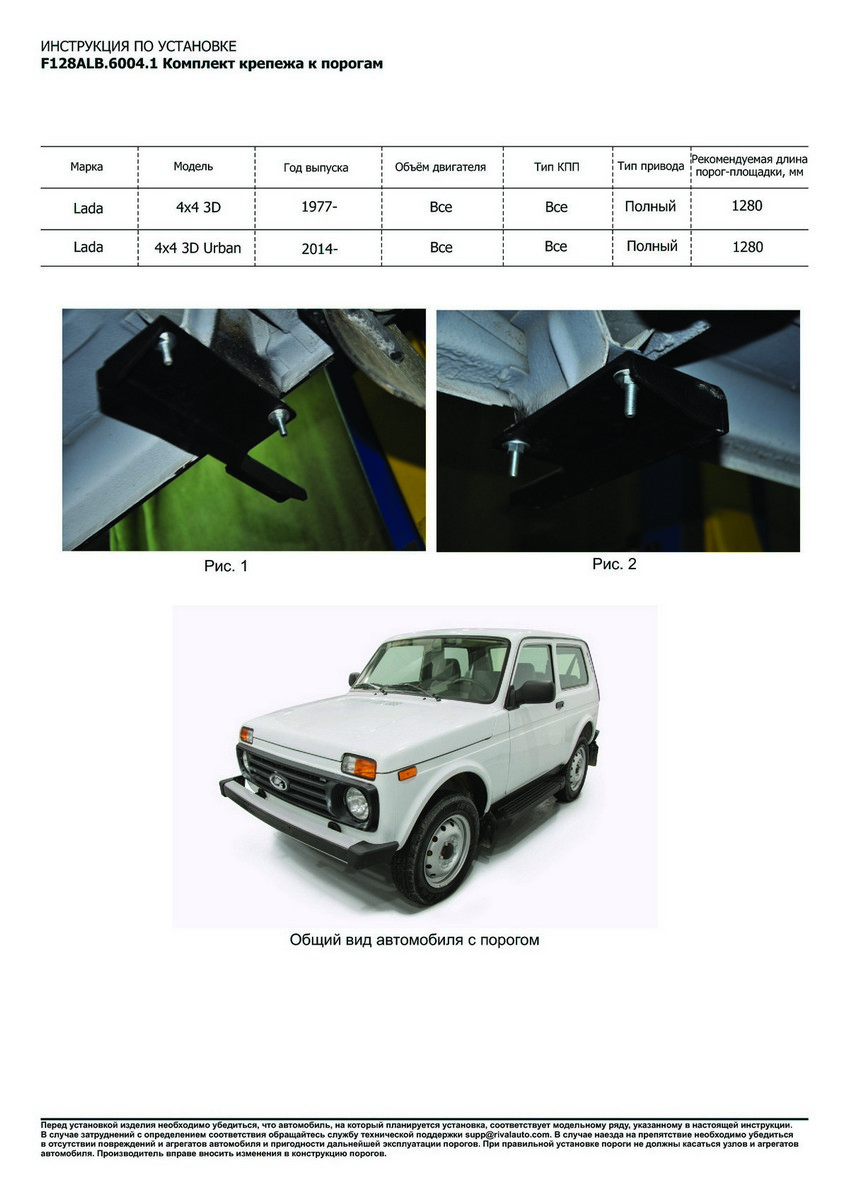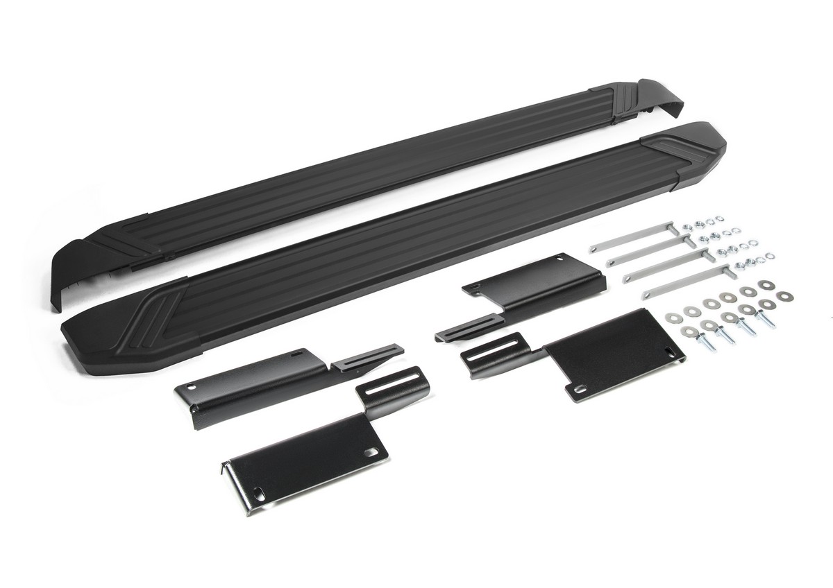 Порог-площадка "Black" F128ALB + комплект крепежа RIVAL, Lada 4x4 3D 1977-/Lada 4x4 Urban 3D 2016-.