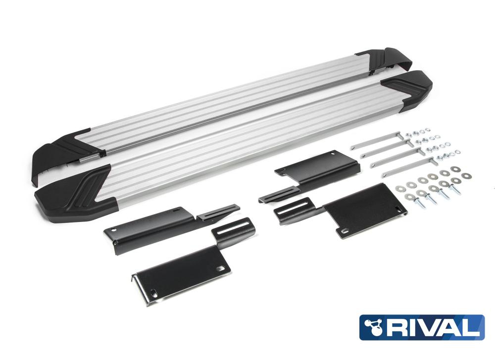 Порог-площадка "Silver" F128AL + комплект крепежа RIVAL, Lada 4x4 3D 1977-/Lada 4x4 Urban 3D 2016-.