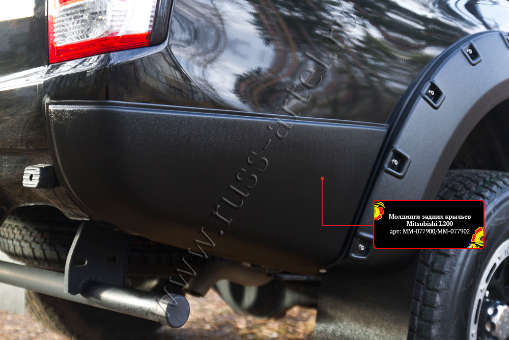 Молдинги предназначены для улучшения внешнего вида Вашего авто и защиты лакокрасочного покрытия от некоторых внешних воздействий, а также позволяют избавить автомобиль от незначительных, но явно неприятных повреждений. Это может быть неудачная парковка, неожиданное открытие двери соседнего автомобиля и прочие мелочи, которые весомо сказываются на ЛКП авто.Молдинги задних крыльев для Mitsubishi L200 2015 года выпуска от компании "Русская Артель", разработаны с учетом удобства в установке изделий, которые можно монтировать самостоятельно при помощи двухстороннего скотча или герметика, с учетом всех пунктов инструкции. Выпускаются молдинги в двух вариантах исполнения с глянцевой и тисненой поверхностью из АБС-пластика, который позволяет сохранять доступную цену в совокупности с отличными качественными характеристиками. Пластик АБС, очень прочный и износостойкий, а значит и сами детали являются долговечными.