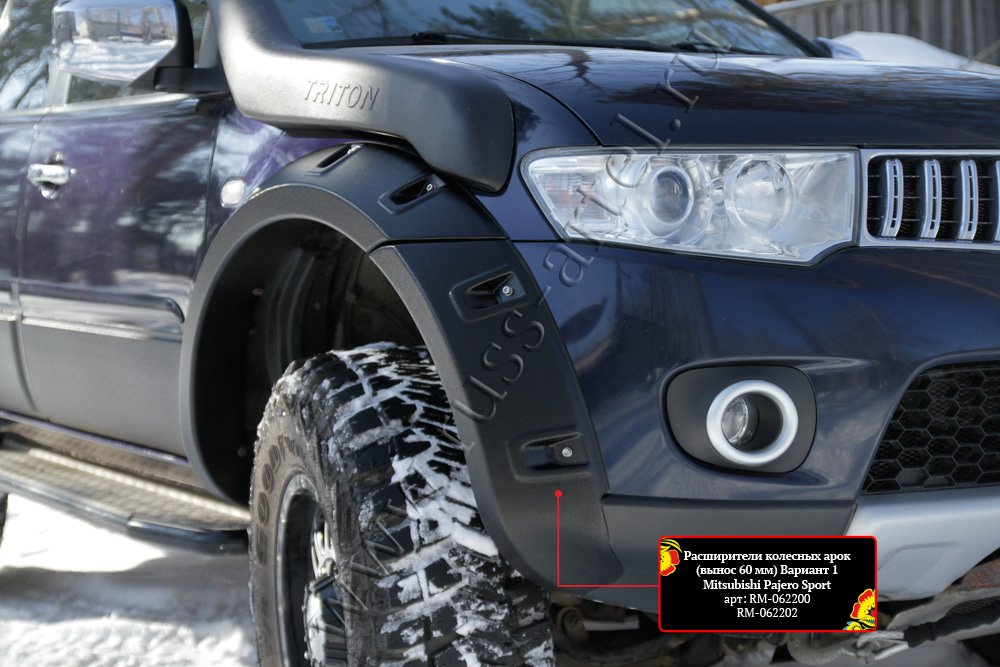 Расширители колёсных арок (вынос 60 мм) Вариант 1 Mitsubishi Pajero Sport 2008-2013 глянец (под покраску).