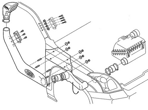 Однако надо учитывать тот факт, что поворот воздухозаборника в сторону ветрового стекла возможен при условии, что при прохождении водной преграды не произойдет набегающей волны на капот и ветровое стекло.