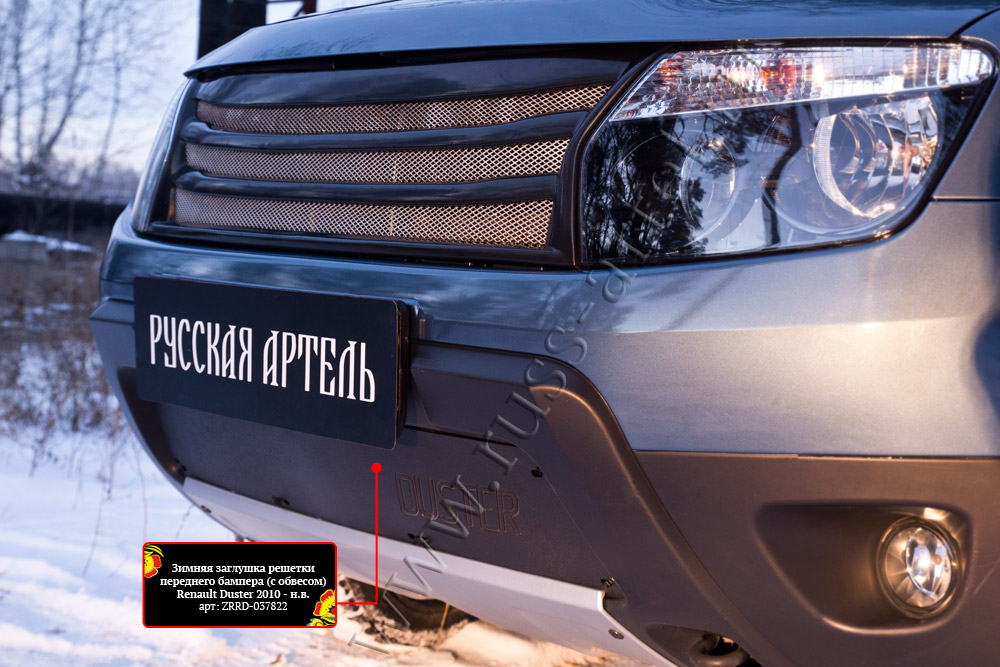 Сколько раз ваш Дастер выбирался из сложных ситуаций, особенно в зимнее время? Сколько раз он уже помогал вам преодолеть дорожные трудности в виде сугробов, снежной колеи и наледи? Так помогите и вы ему в это холодное время года. «Русская Артель» разработала очень полезную накладку для дастероводов, которые небезразличны к своему верному автомобилю. Это заглушка решетки переднего бампера.