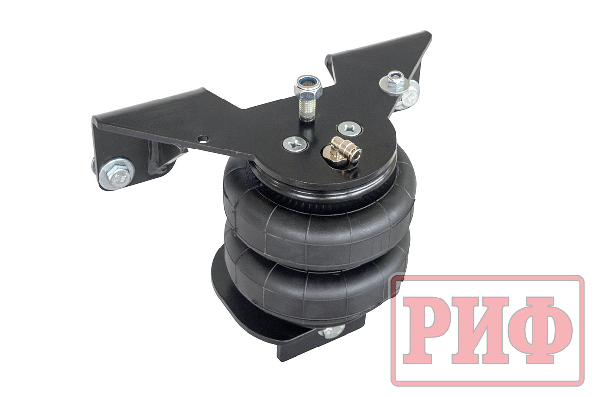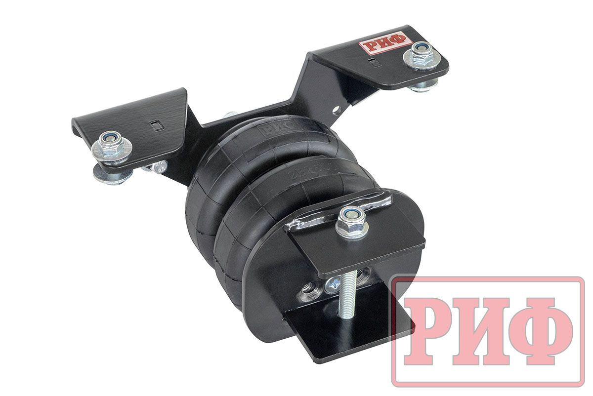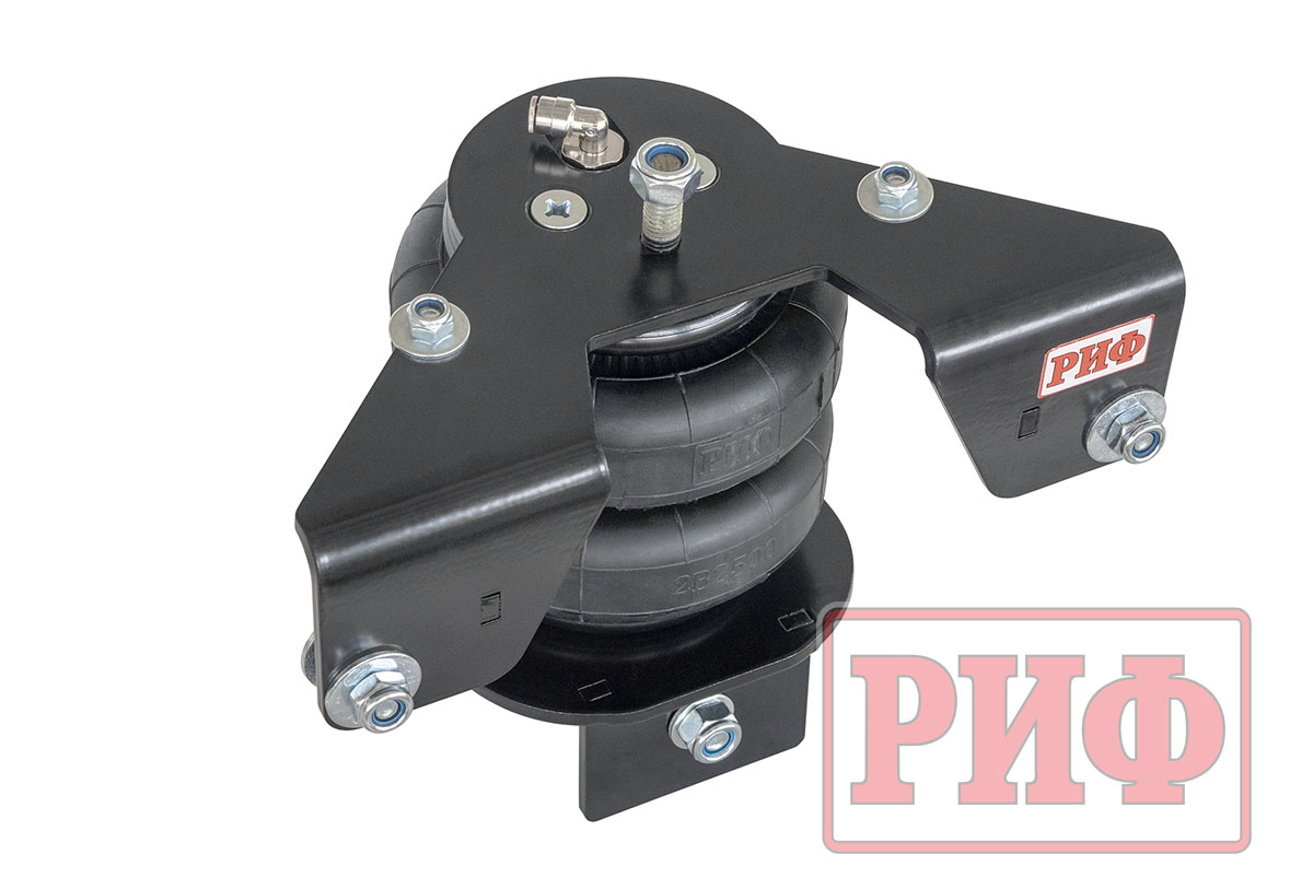 Комплект пневмоподвески РИФ устанавливается в дополнение к штатной подвеске автомобиля и позволяет снизить нагрузку на рессоры и использовать полную грузоподъёмность автомобиля без изменения геометрической проходимости.