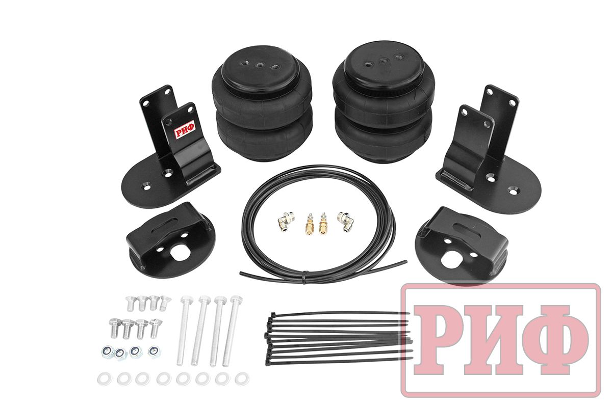 Комплект пневмоподвески РИФ устанавливается в дополнение к штатной подвеске автомобиля и позволяет снизить нагрузку на рессоры и позволяет использовать полную грузоподъёмность автомобиля без изменения геометрической проходимости.