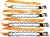 Подходят для всех типов внедорожников и квадроциклов, монтируются на месте без поддомкрачивания, даже на уже застрявший автомобиль. В комплекте: браслеты - 4 шт., перчатки, крючок, инструкция по монтажу, сумка.