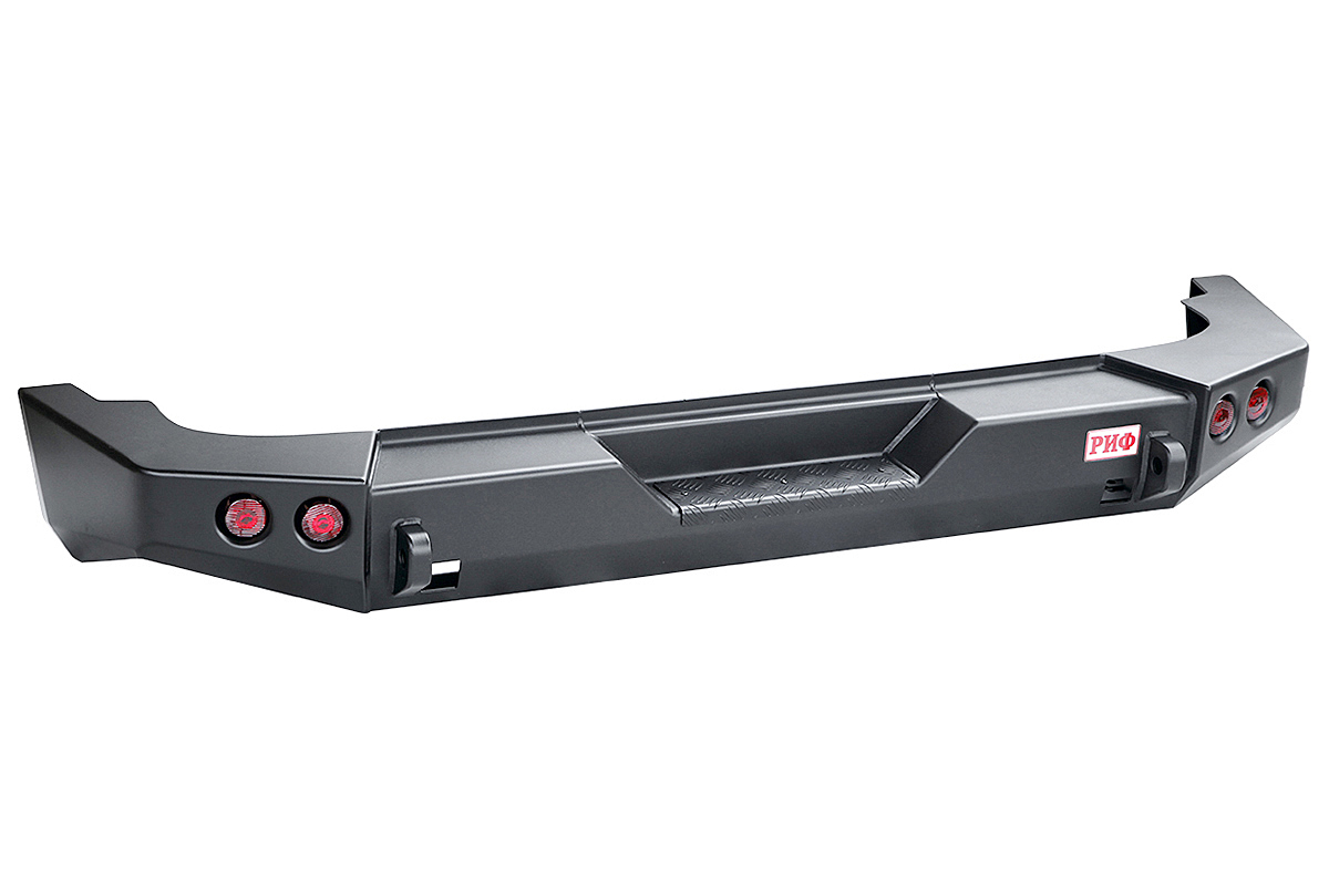 Дизайн бампера выполнен в фирменном стиле JEEP и органично впишется в его общий стилистический облик. Мощная силовая конструкция, присущая всем изделиям РИФ, надежно защитит кузов внедорожника на бездорожье или в городе в случае непредвиденных инцидентов. Бампер оборудован упорами под хай джек и буксирными проушинами для работы с рывковой или буксировочной стропой.