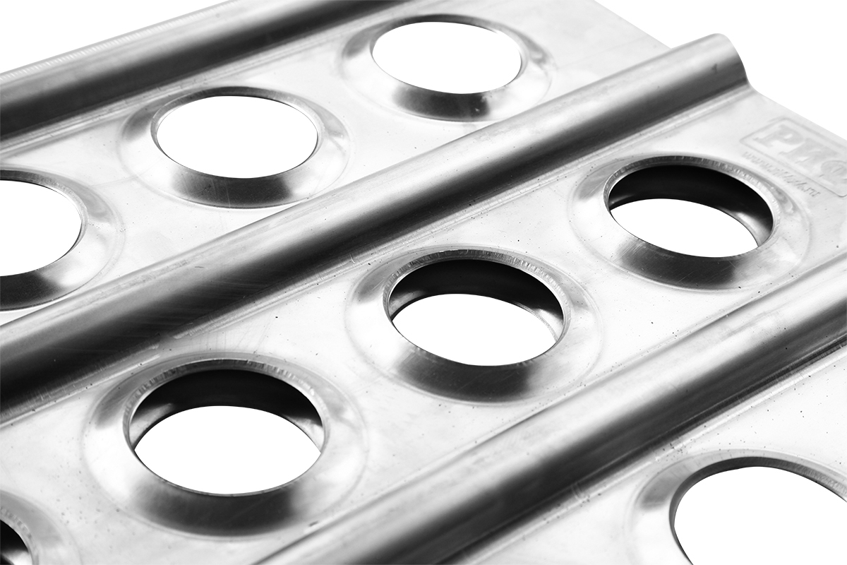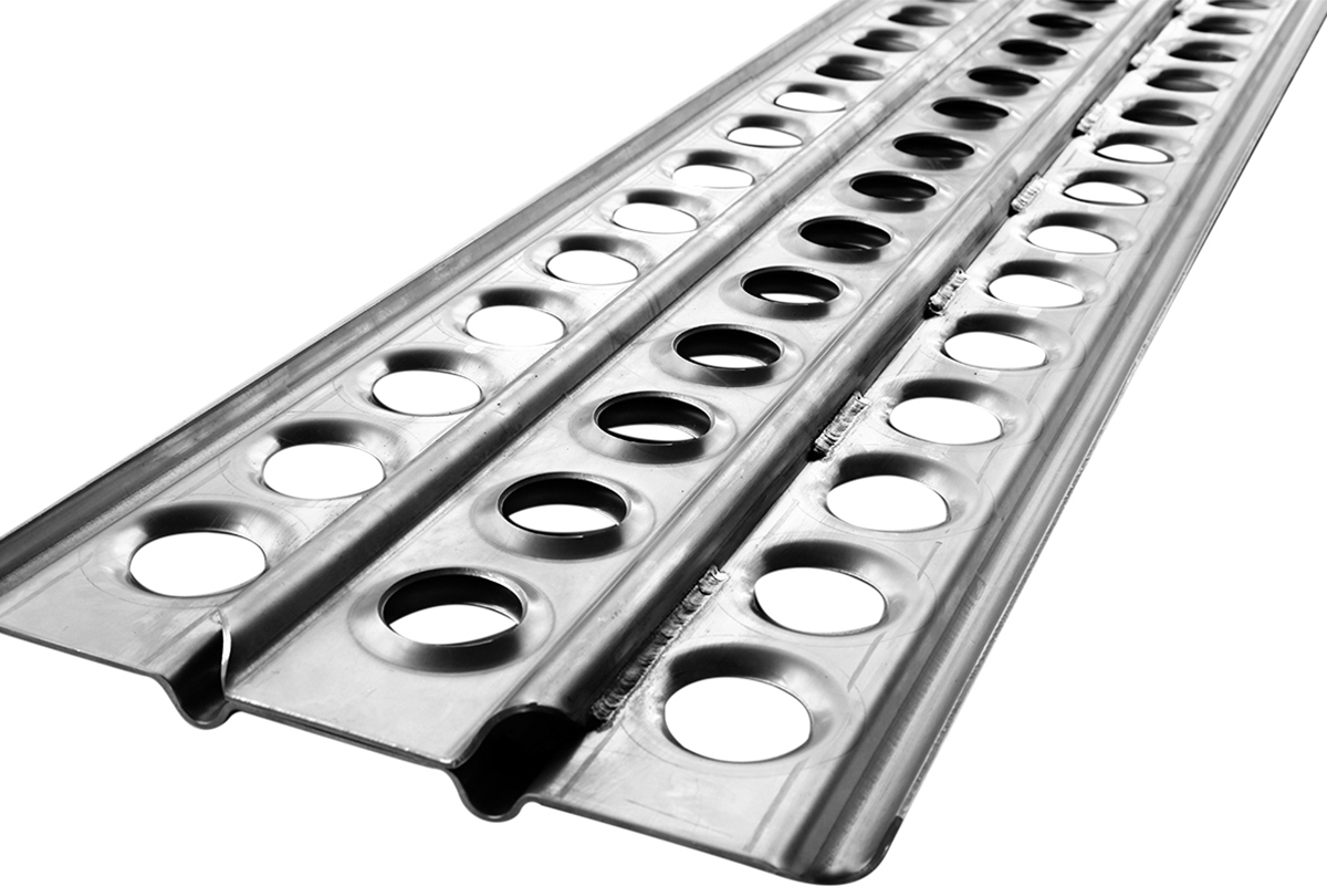Большие отверстия с отштамповкой обеспечивают хорошее сцепление с шинами и минимизируют пробуксовку колёс по поверхности трака.