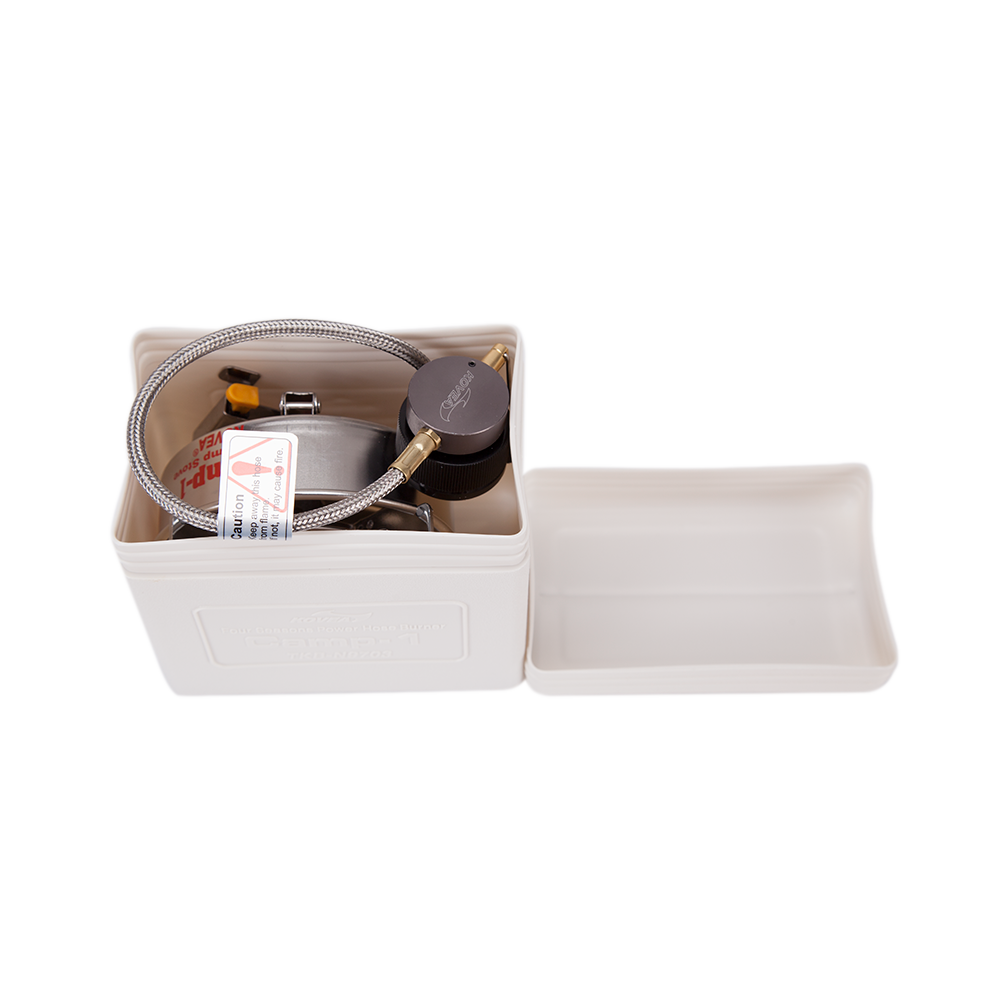 Длинный шланг позволяет при критически низких температурах, когда газ в баллоне начинает замерзать, держать его в тепле, например, в спальнике или на крышке кастрюли.