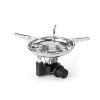 Раскладные лапки конфорки горелки позволяют использовать посуду большого размера и приготовить пищу для нескольких человек. Теплоотражающий экран круглой формы экономит топливо и эффективно отражает тепло газовой горелки на дно посуды, увеличивая тем самым КПД.