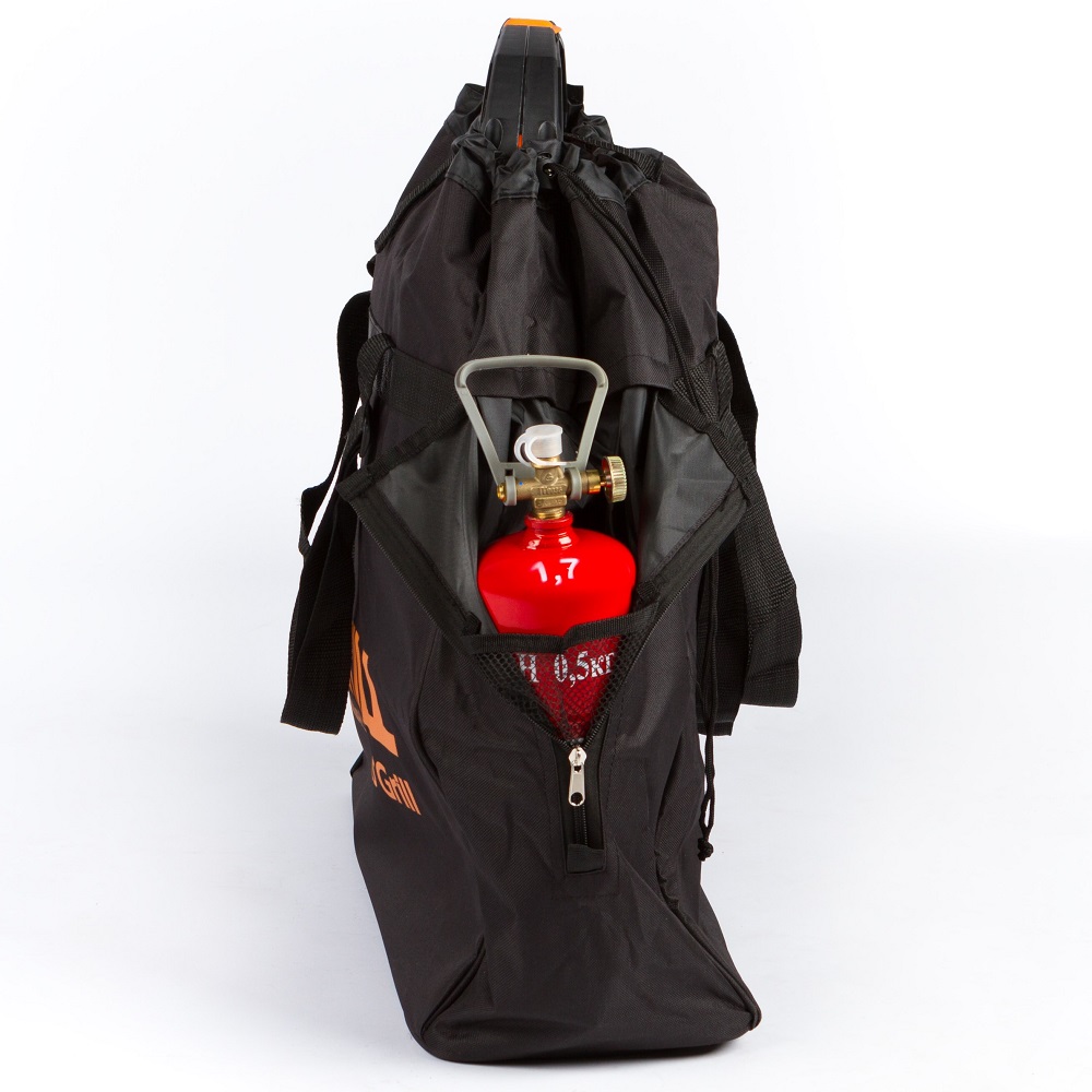 Прочная, функциональная сумка с жестким дном и карманом для цангового газового баллона.