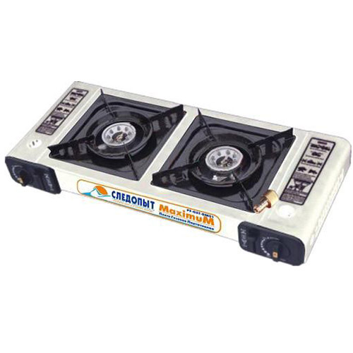 Настольная газовая плита Следопыт MaximuM с двумя горелками и возможностью подключения к бытовому газовому баллону.