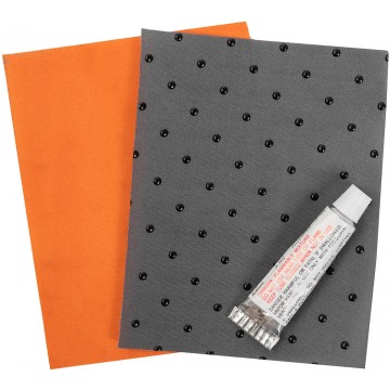 - Нанесите тонкий слой клея на заплатку из ремнабора и прижмите её к поврежденному месту на 1 час.