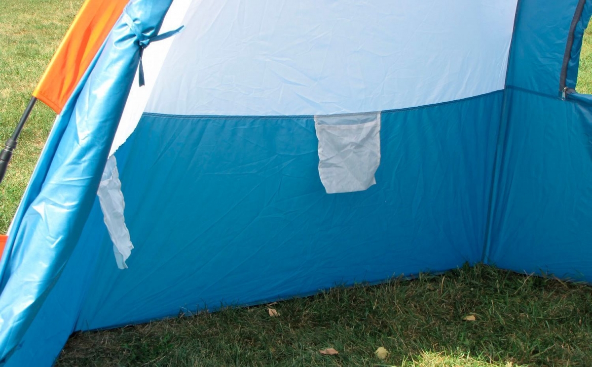 У палатки один вход. На противоположной от входа стенке есть большое полукруглое окно. Оно позволяет в случае необходимости быстро проветрить палатку.