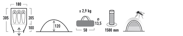 В верхней части купола расположена вентиляция типа «гриб». Материал тента имеет полиуретановое покрытие и водонепроницаемость не менее 1500 мм водяного столба. Швы проклеены. Это защищает от ветра и дождя. Палатка имеет 6 оттяжек, которые позволяют хорошо зафиксировать палатку во время ветра. Вход в палатку защищает тканевый полог, а если погода жаркая, то можно оставить только москитную сетку на входе.
