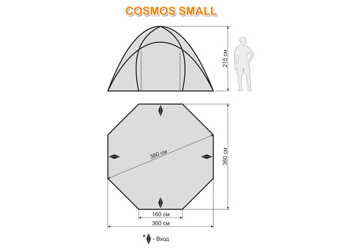 Внешний тент: 360 (Д) X 380 (Ш) X 215 (В) CM
