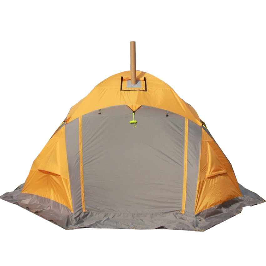 Но очень важно, что шатер выполнен с учетом возможности применения теплообменника, что позволяет использовать его круглогодично. В качестве альтернативного источника тепла можно использовать и портативный газовый обогреватель, который отлично справится с обогревом внутреннего пространства.
