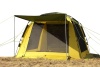 После того, как вы установили сам тент, подвесьте внутреннюю палатку и расшпильте ее дно в землю. Внутренняя палатка имеет два входа – один ориентирован на выход из тент-хауса наружу, из второго вы попадаете непосредственно внутрь шатра. На боковых стенках внутренней палатки два больших окна. И входы и окна внутренней палатки оснащены противомоскитными сетками и ветрозащитными шторками. На боковых стенках внешнего тента имеется два окна во всю стенку, которые также имеют противомоскитные сетки и ветро/водозащитные стенки. Размеры внутренней палатки позволяют разместить в ней четырех взрослых человек.