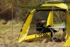 Входы шатра и окна на стенках оснащены противомоскитной сеткой и дублируются ветро/водозащитными стенками. В комплекте с шатром идут две стальные стойки.
