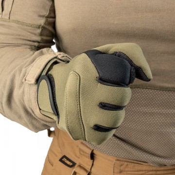 Перчатки имеют нескользящее покрытие на ладонях. На каждой перчатке в паре имеется один откидной палец (указательный).
