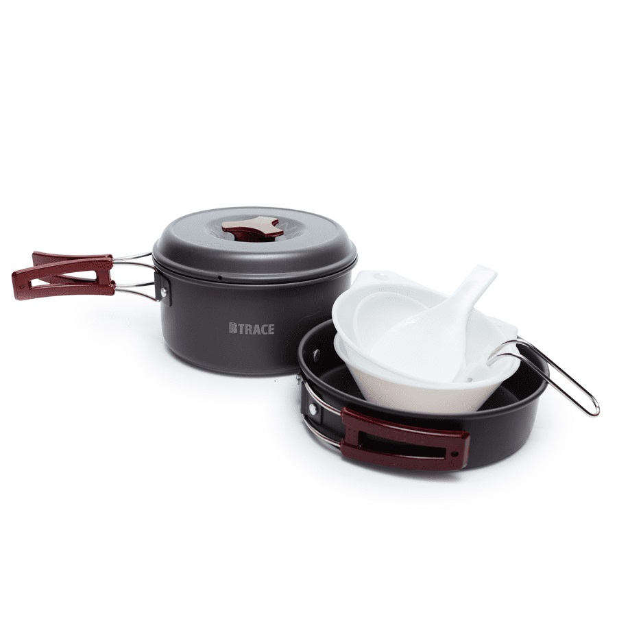 Набор посуды BTrace 1-2 персоны - отличное решение для готовки в поездках небольшой компанией как в длительные путешествия, так и в автомобильных поездках выходного дня.