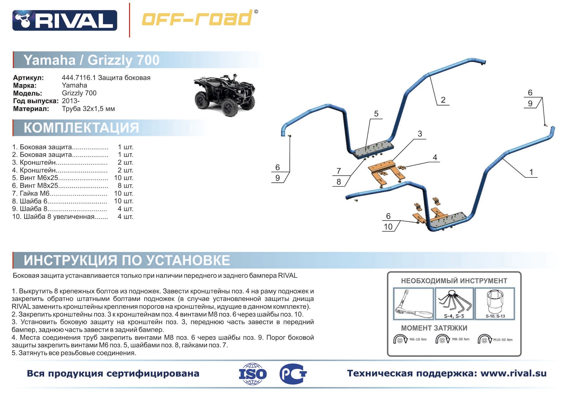 Бампер боковой Yamaha Grizzly 700/550 Риваль 444.7116.1
