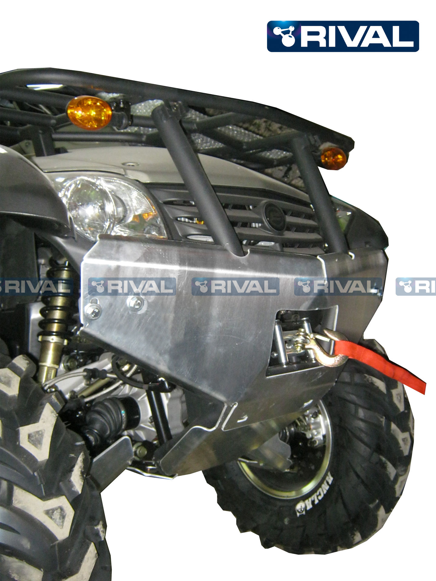 Листовой бампер выполняет функцию защиты от механических повреждений лицевого пластика и бампера квадроцикла, изготовлен из алюминия 4мм, имеет порошковое покрытие и устанавливается в штатные места.