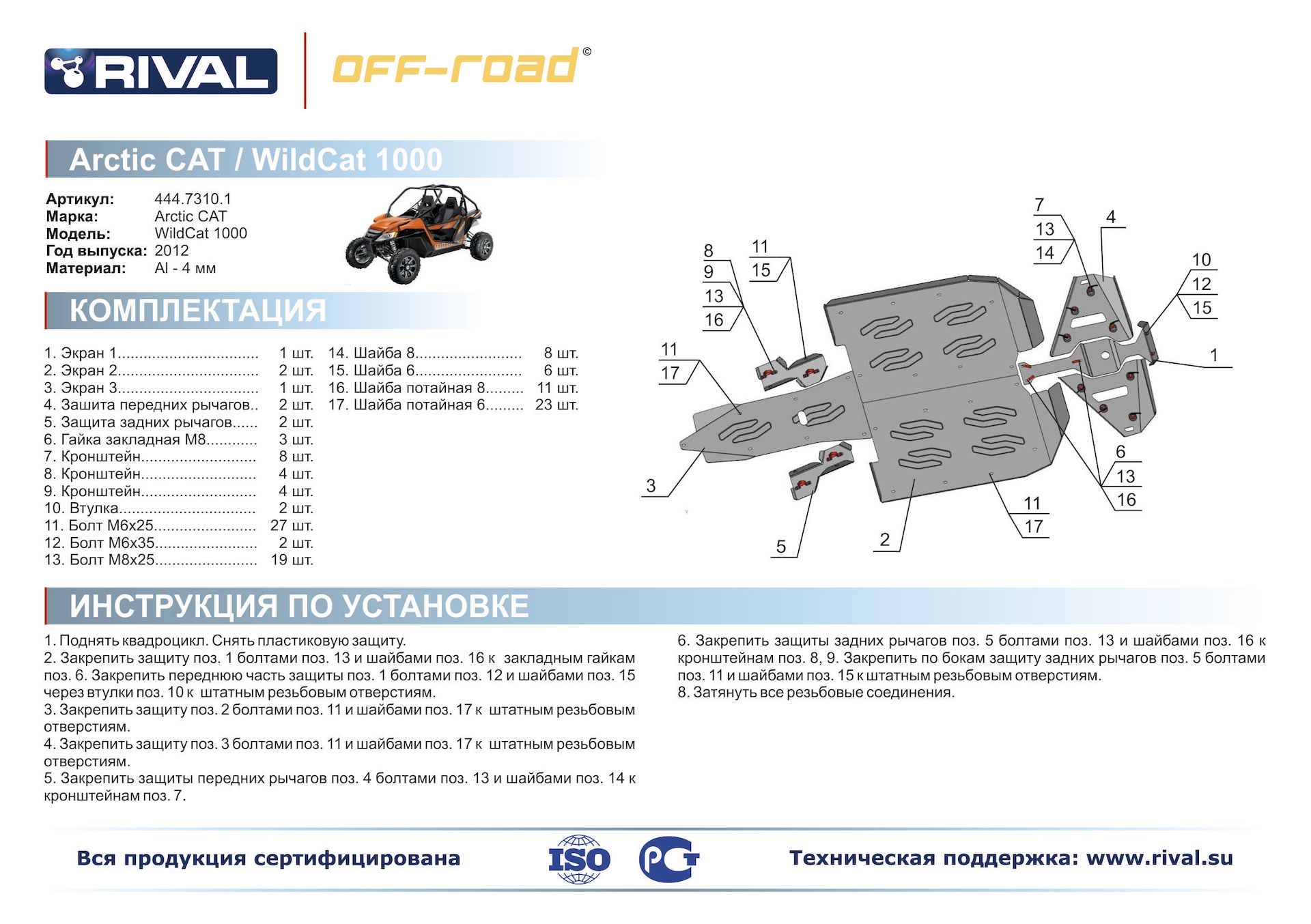 —Комплект защит Arctic Cat WILDCAT 1000 Риваль 444.7310.1