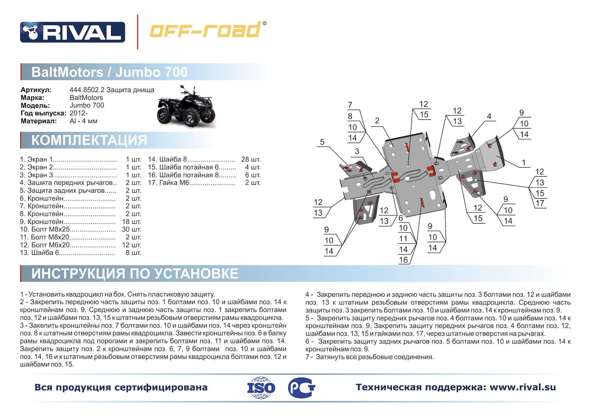 —Комплект защит Baltmotors-SMC Jumbo 700 Риваль 444.8502.2