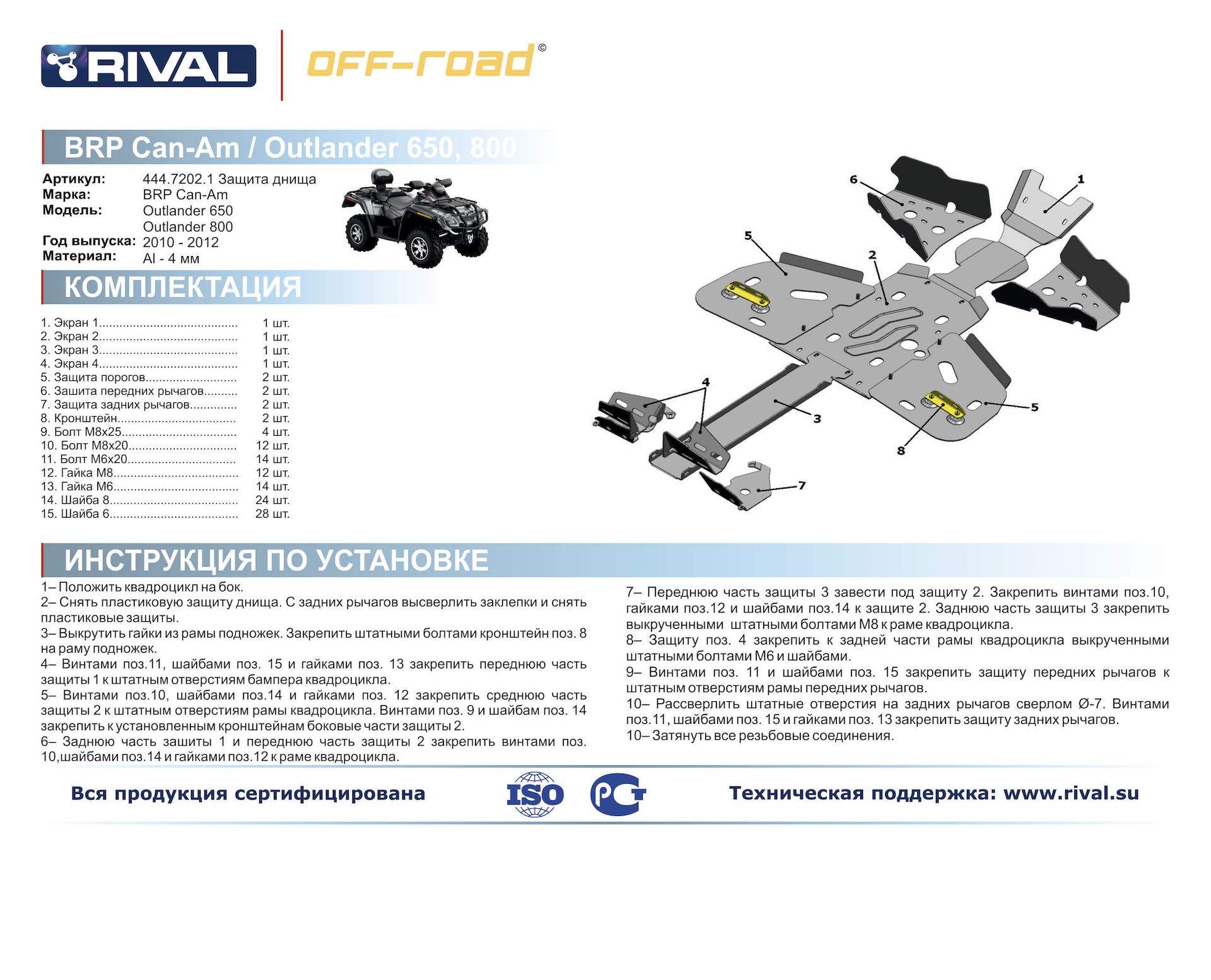 Комплект защиты, изготовленный из алюминиевого сплава, толщиной 4мм, произведенный на высокотехнологичном оборудовании, соответствует всем современным стандартам качества и надёжности.
