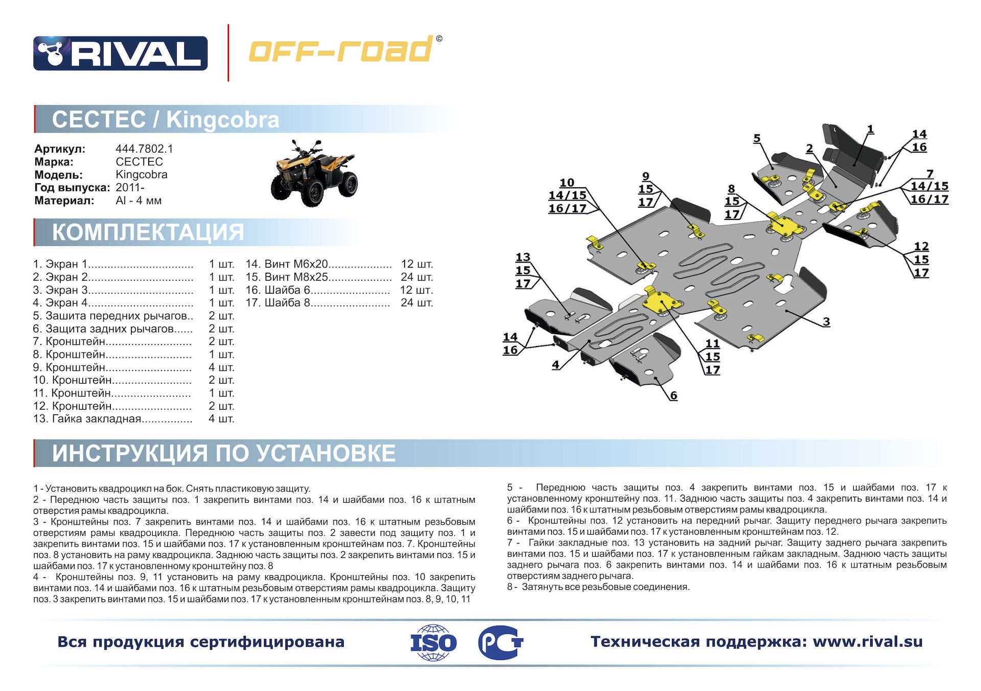 —Комплект защит Cectek Kingcobra ATV EFI EVO Риваль 444.7802.1
