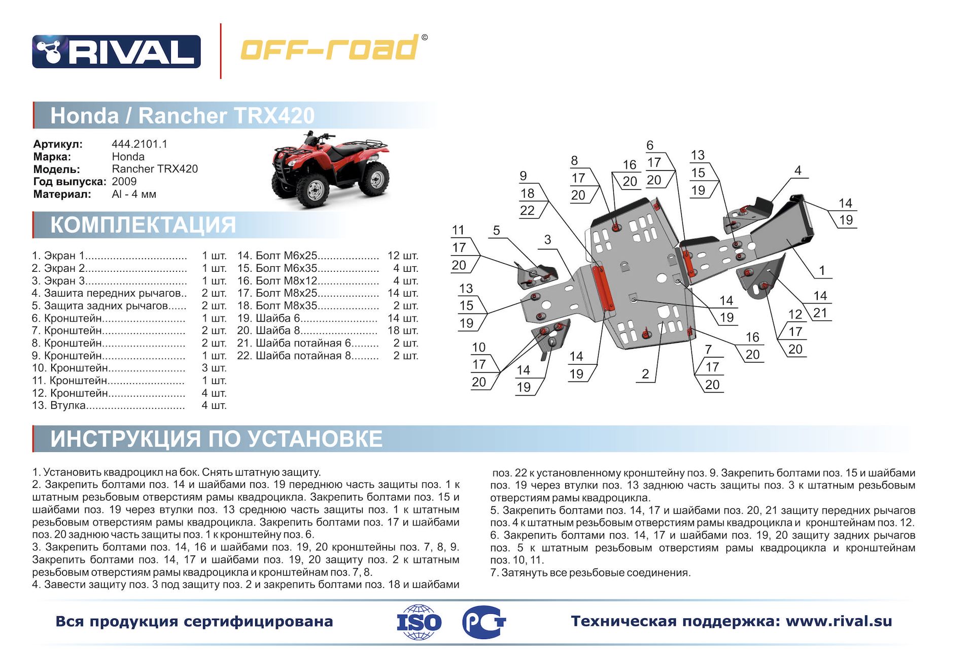 —Комплект защит Honda Rancher TRX420FA Риваль 444.2101.1