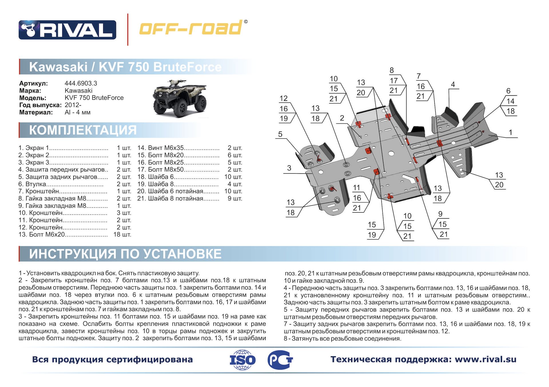 —Комплект защит Kawasaki ATV KVF-750 Риваль 444.6903.3