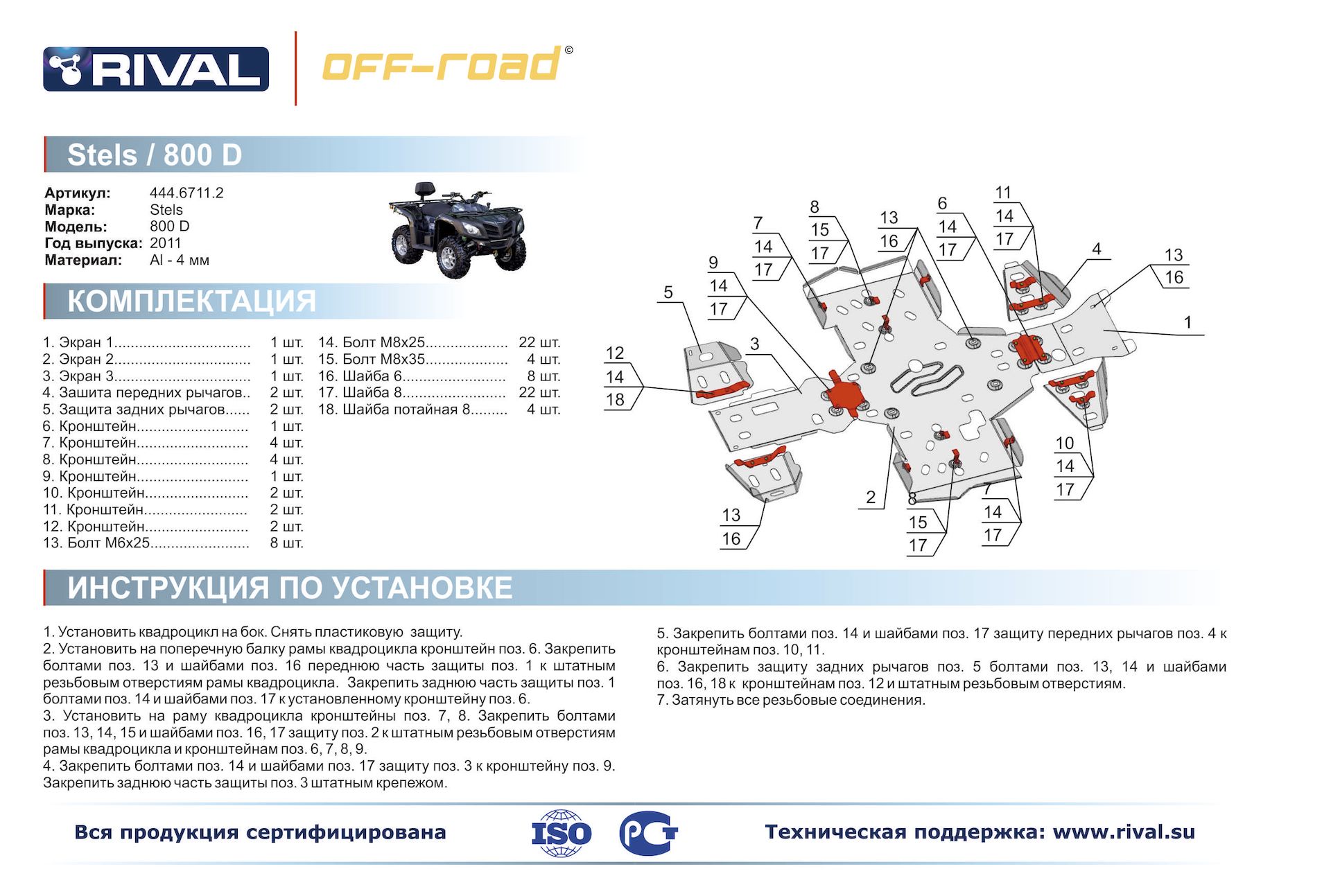 Комплект защит Stels ATV 800 Dinli Риваль 444.6711.2