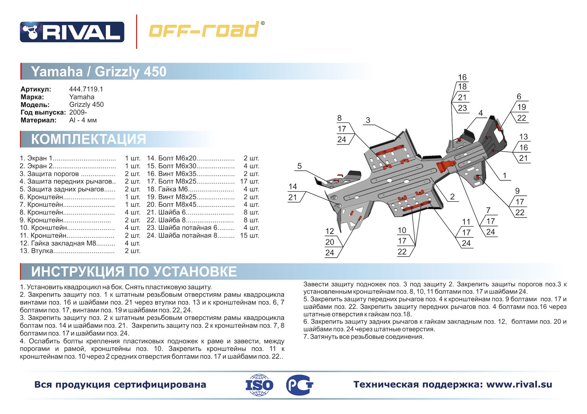 Комплект защиты, изготовленный из алюминиевого сплава, толщиной 4мм, произведенный на высокотехнологичном оборудовании, соответствует всем современным стандартам качества и надёжности.