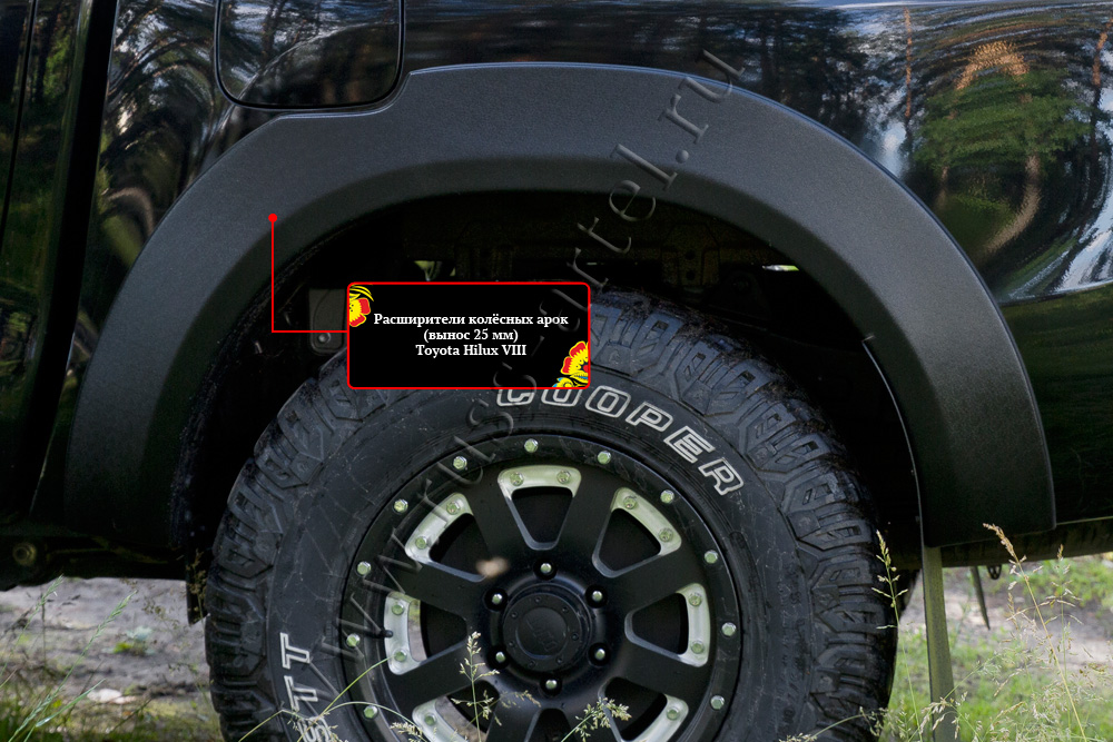 Мы говорим о дополнительном тюнинге на Toyota Hilux – расширители колесных арок с выносом 25 мм производства «Русской Артели». Ведь большинство комплектаций и вовсе не содержат такого рода защиту как расширители арок, что приносит определенные хлопоты обладателям Хайлюкса при его эксплуатации.