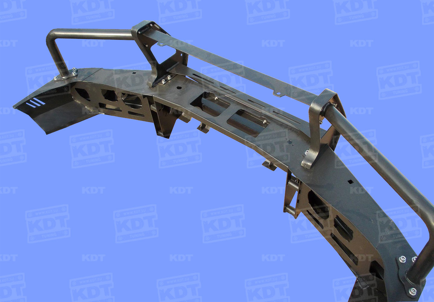 Передний силовой бампер со съемным кенгурином, с местами под противотуманные фары, с площадкой под лебедку: