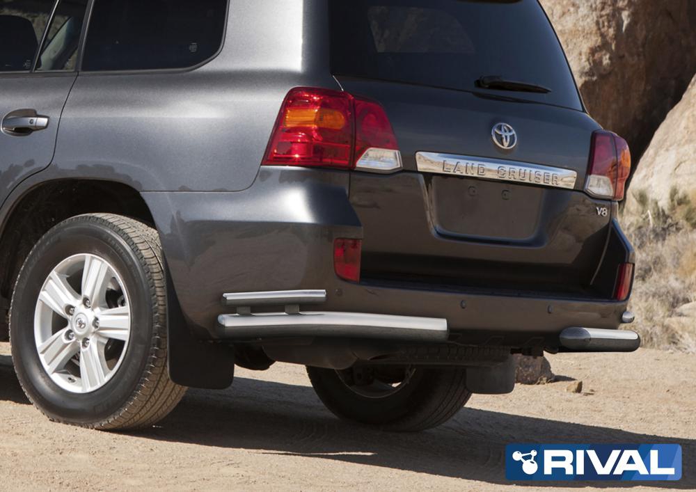 Защита заднего бампера d76+d42 уголки + комплект крепежа, RIVAL, Toyota Land Cruiser 200 2011-2015.